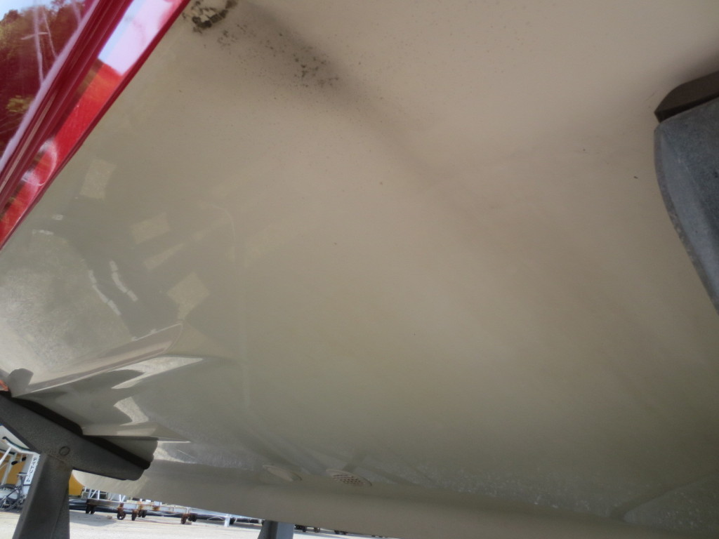 普段、後部にカバーを掛けて保管しているそうですので、操船席周りもキレイだと思いますが、リーニングシートのクッションには、使用感と汚れが見られます。