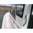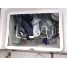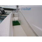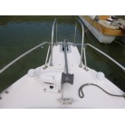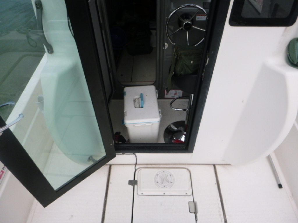 バウには電動ウインチ、キャビン入り口にはイケスがあります。