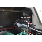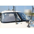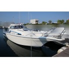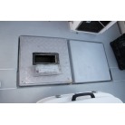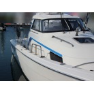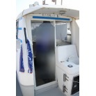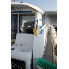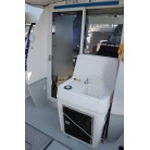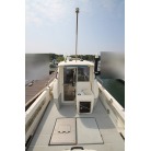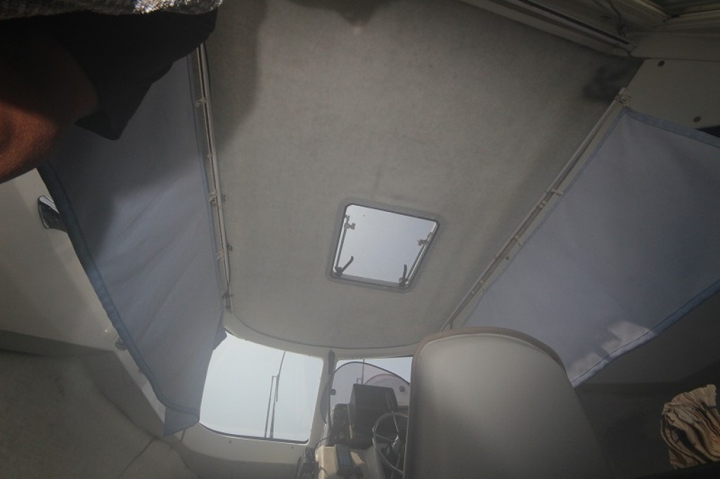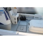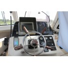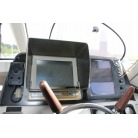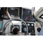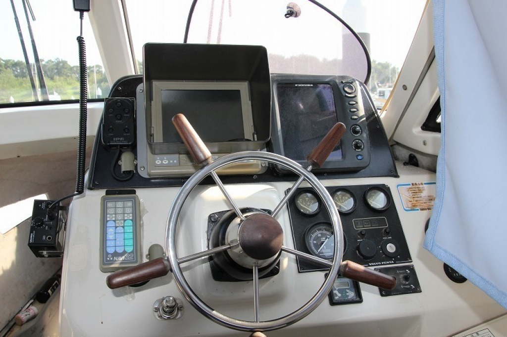 視認性の良い操舵席はシンプルで機能的な構造になっています。レーダーは装備されていません。魚探とGPS魚探が装備されていました。