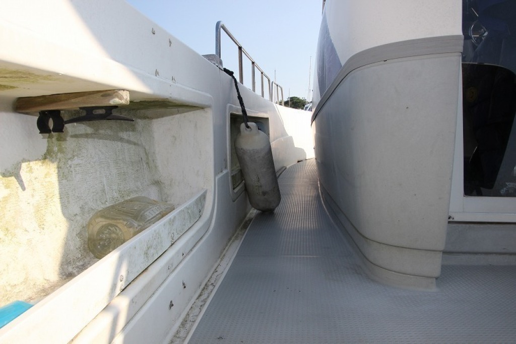 ハルやガンネル周りやデッキにしても支障のあるような修復痕やブヨブヨ感といった部分は全く見受けられません。2019年の春頃にペラ交換と船底やドライブの清掃及び塗装施工、また同時に亜鉛版等の消耗品の交換等を行ったとのことです。
