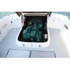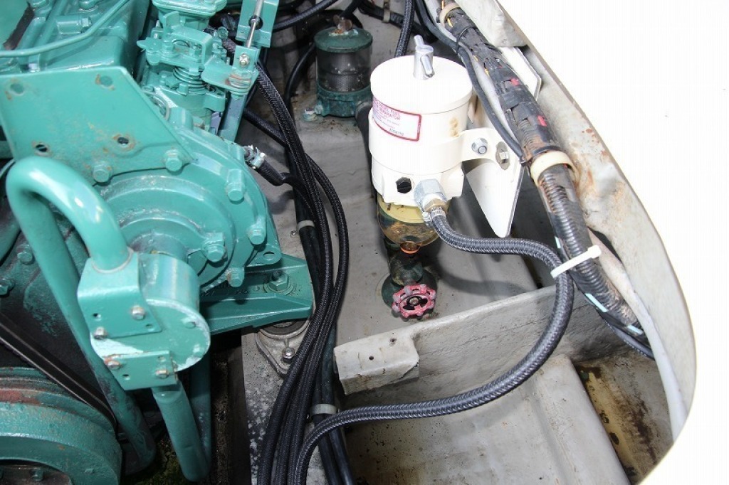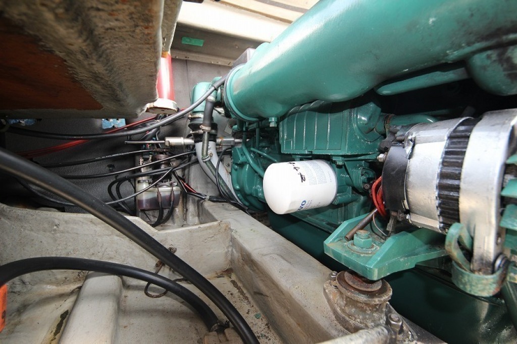 エンジンはボルボ製ディーゼルエンジン AD41/DP、定格出力150馬力を1基装備しています。巡行速度は18~20、最高は25ノット(3000rpm)以上は出ますとのことです。