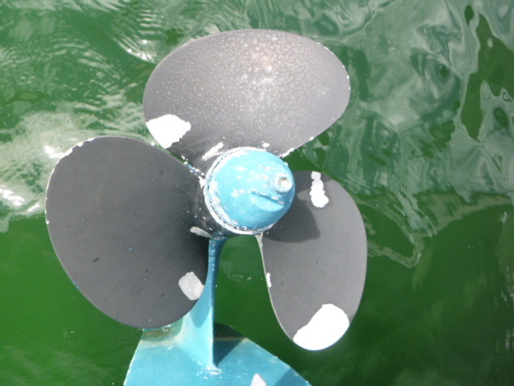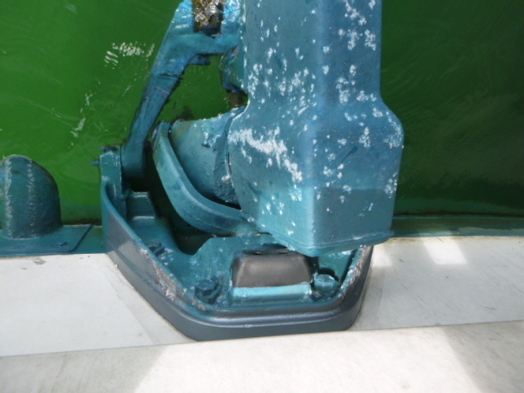 ドライブはハイチルトタイプで写真にある様に、ドライブ本体やベローズ部分が水面から出た状態で係留出来る為、貝の付着や塩害には有利なドライブです。