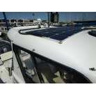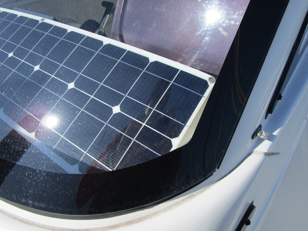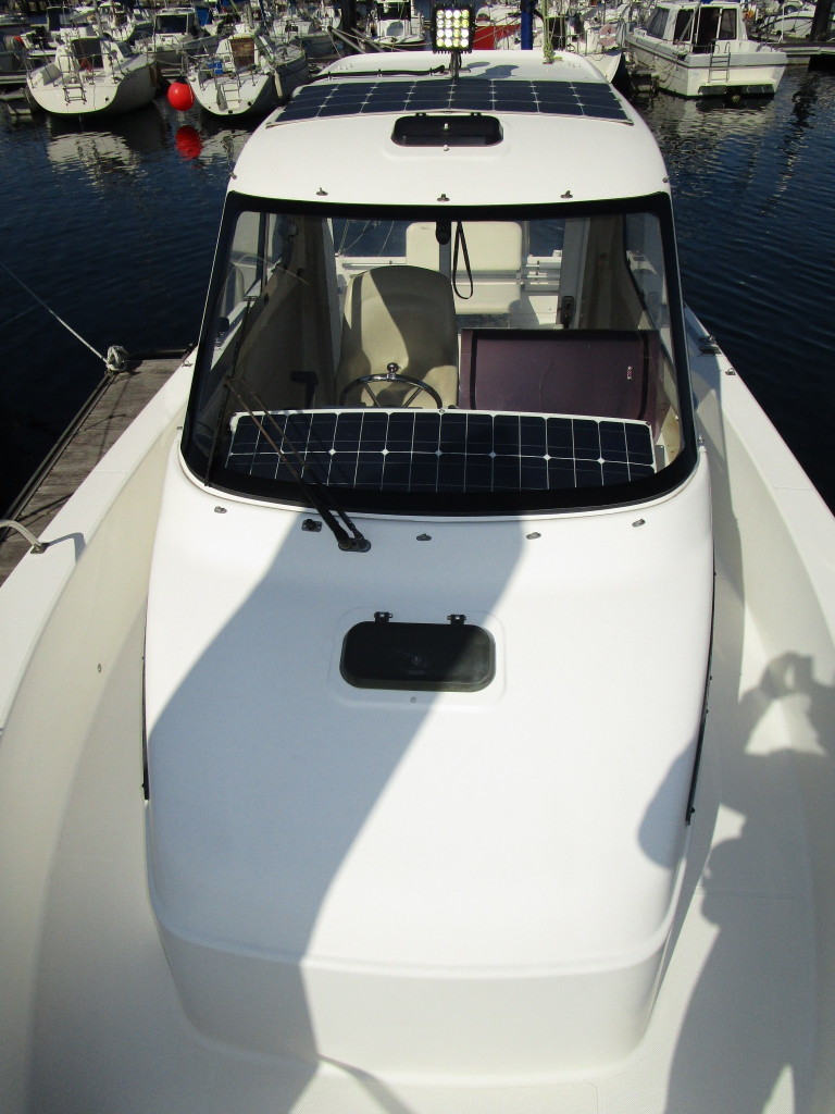 操船席前方に50Wのソーラーパネルが置いてあります。