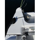 その他、アフトデッキサイドには電動リールのコンセント2個とロッドホルダーベース、後部には巻き取り式のスパンカーが装備されています。