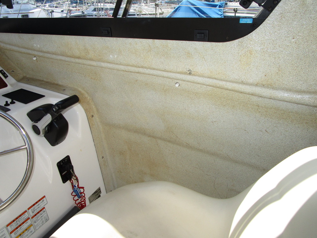 操船席の天井や壁には、経年による変色(汚れ?)が見られましたが、操船席のメーター周りやシフト回りなどは非常にキレイです。
