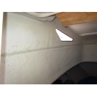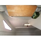 Vバース入口ドアの上部にあるアクリルパーツは、トイレ使用中にカディ方向から中が見えてしまう構造だったそうで、今はカーボン調のステッカーを貼って、中が見えないように工夫されています。