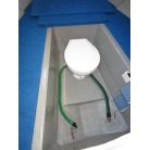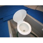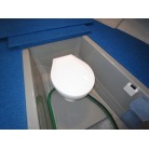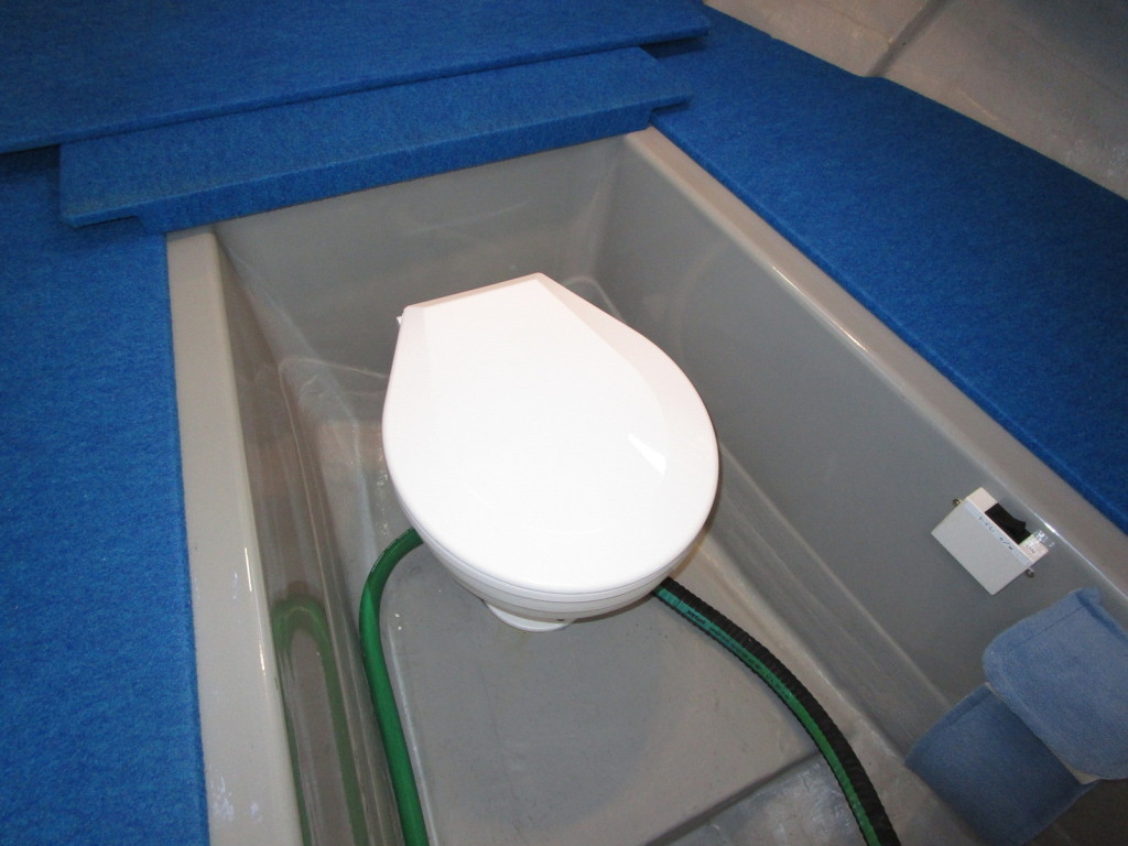 ブルーの敷板を外すと、下に電動のマリントイレが隠れています。