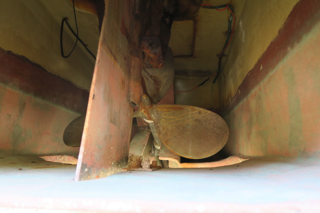 ペラや舵は陸上げ時に擦らないよう収納式となっています。