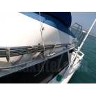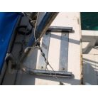 船体で気づいた点で右舷後部のガンネルの凹みと船体の擦り傷ブルワークに塗装のヒビがありました。(写真8) 他にも気にならない小傷はあるかと思います。