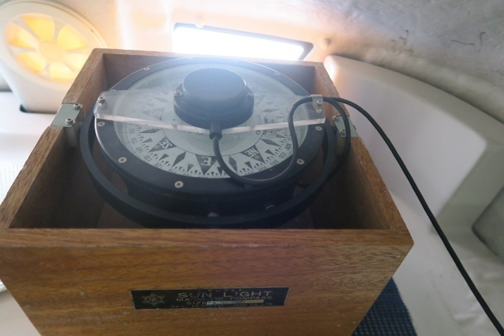 ユニカス製オートパイロットが装備されています。使用時は若干左に寄ってしまうそうなので、別途調整が必要と思われます。また、舵リモコンが装備されています。