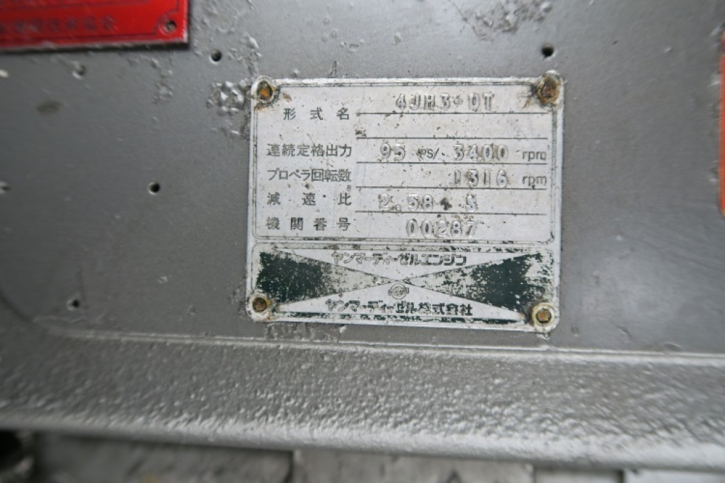 | 船検証記載馬力 | 95馬力 / 3,400rpm(回転数) | 推進機器種類 | シャフト船 |