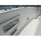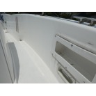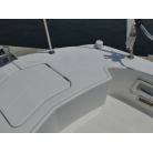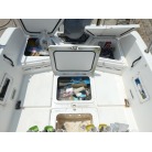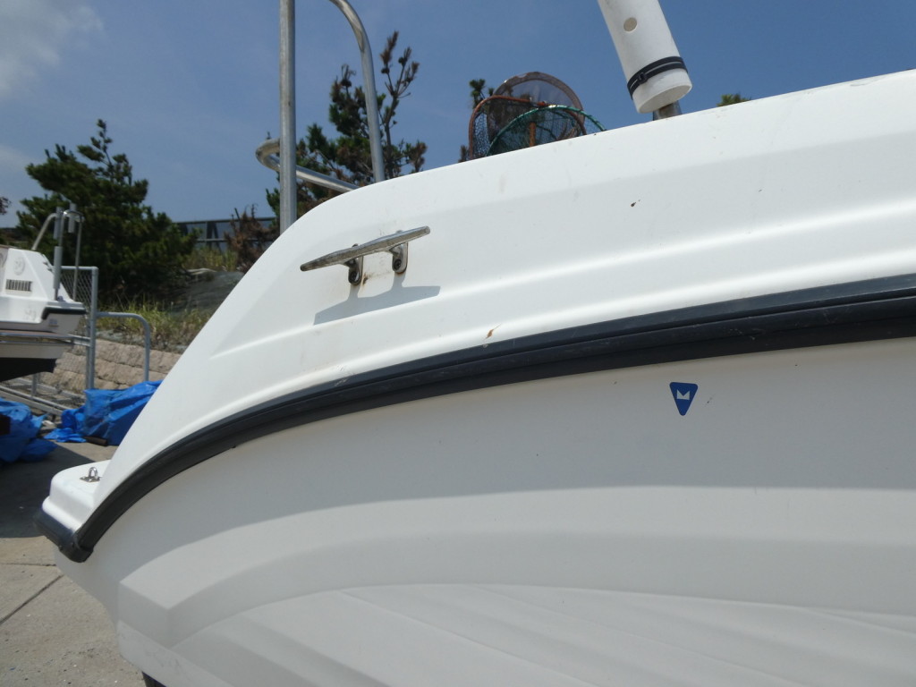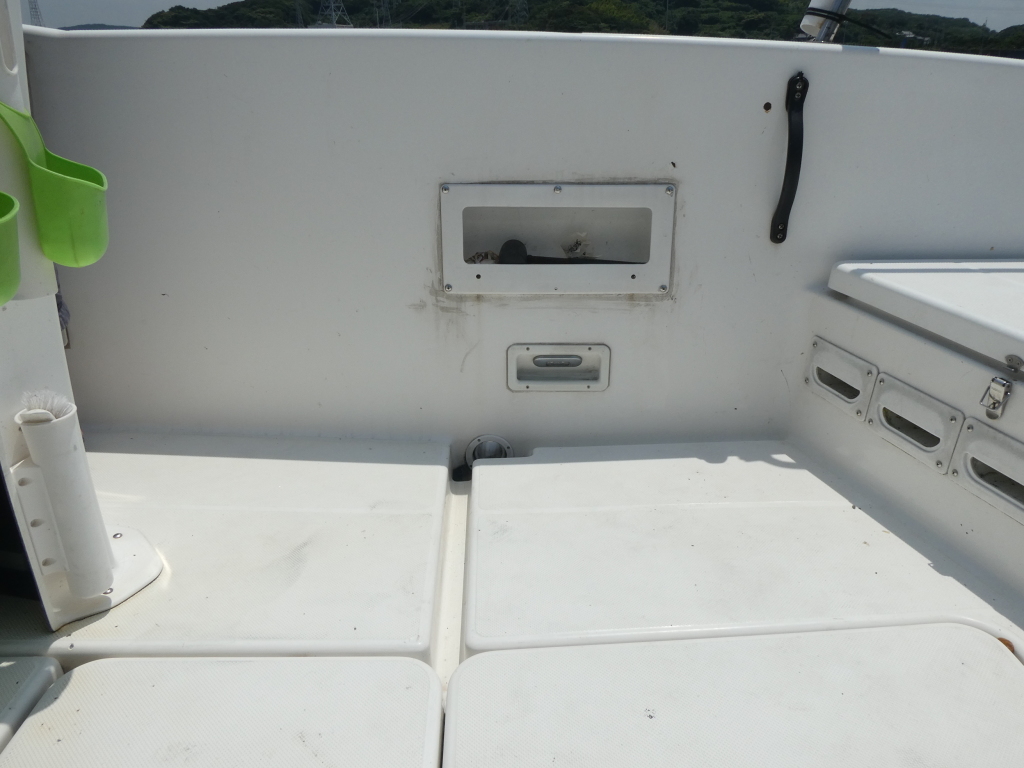 SR-Xの特徴でもあるスクエアバウのおかげで、多少風のある日でも走行中に波を越えた後の波しぶきがデッキ内にかかりづらく、バウ・スターンレールが装備されていますのでキャスティングやスタンディングファイトも安心してできますので魚をかけてから取り込みまで楽にできます。