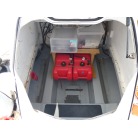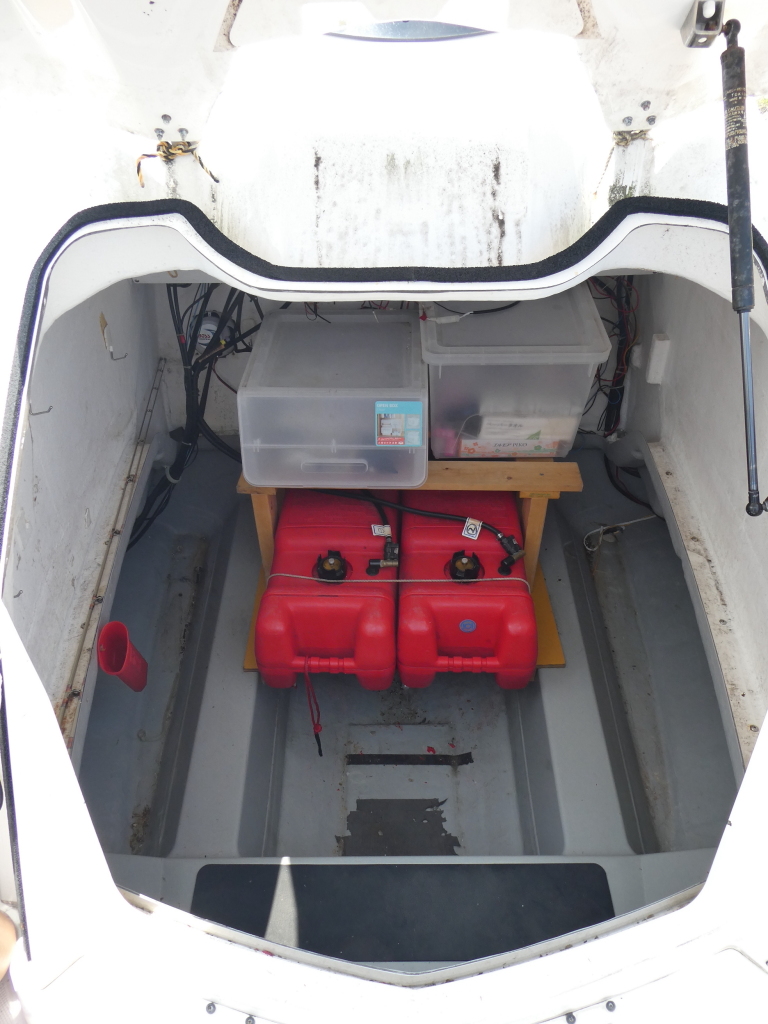 既存燃料タンクはスターンデッキ下部に備え付けられていますが、滑走時の前浮きを抑制するために追加でカディ内部に燃料タンク22.5L ×2個取り付けられています。