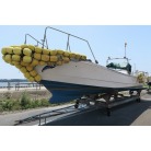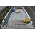 和船タイプのドライブ艇で、前後のデッキがとても広くフィッシングや作業艇としても活躍してくれそうです。