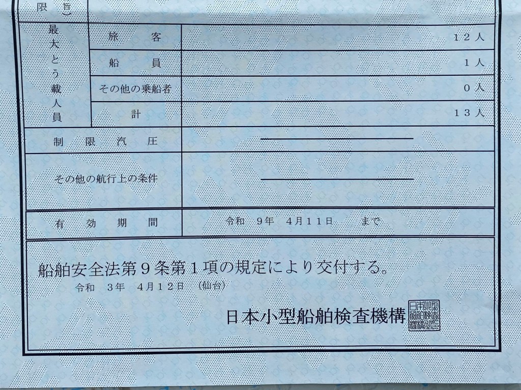 | 定員 | 13人 | 次回船検 | 中間検査(2024年07月11日) |