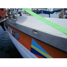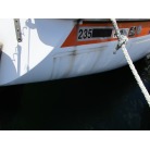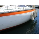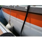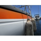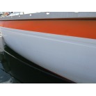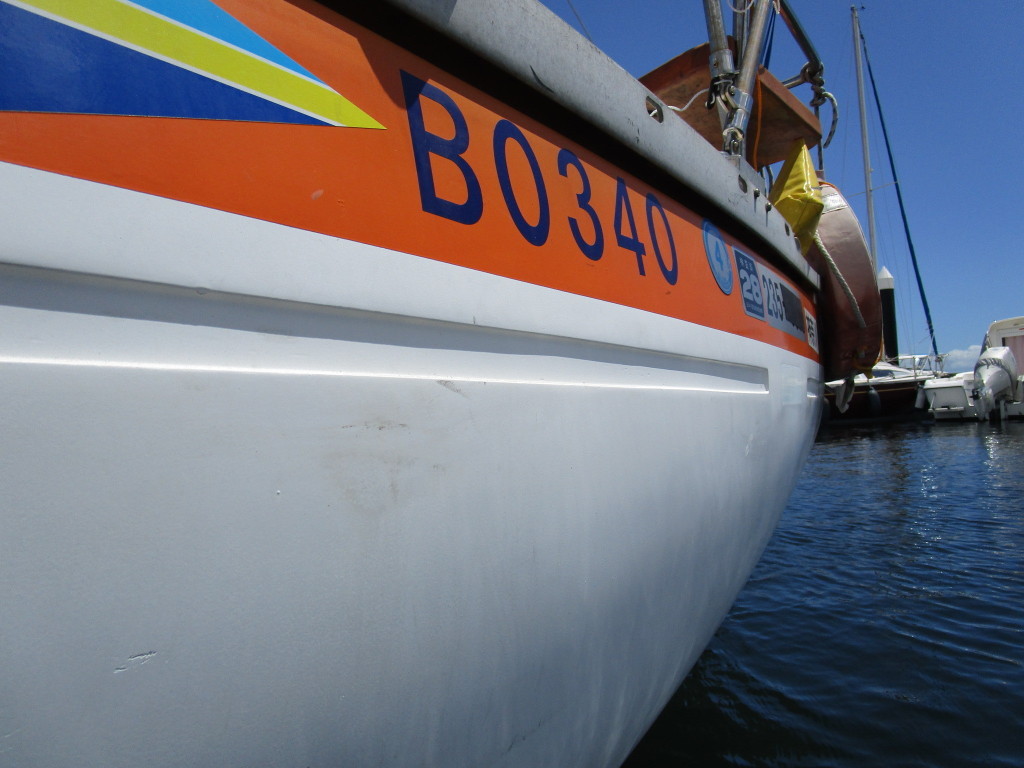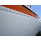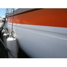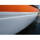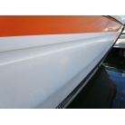 ハル周りは、白とオレンジに塗られており、一見キレイに見えますが、離着岸時に付いたと思われる線キズが船体中央辺りの左右側両方共に見られます。