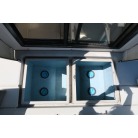 バウデッキにはデッキ下収納が3箇所、キャビン入り口付近にイケスが2箇所設置されています。