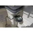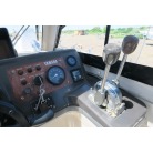 操船席周りには標準の備え付けの計器以外は、GPS魚探のみ設置されています。