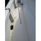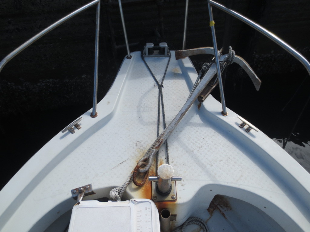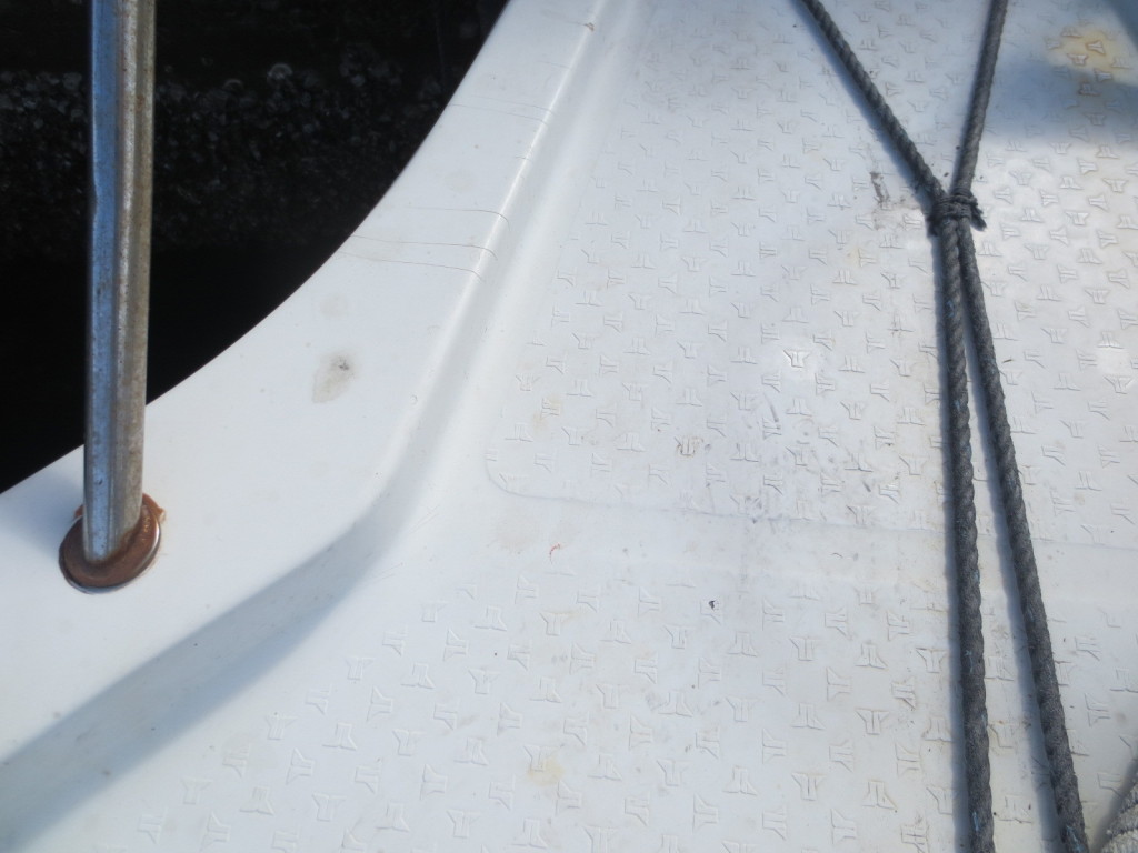 ハル回りは適所に防舷材が取り付けられている為、大きな損傷等は無い感じです。通常使用における傷や経年劣化はあります。 船底に関しては海上係留中の為、確認が出来ていません。