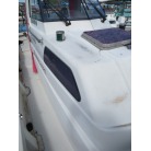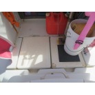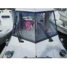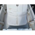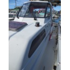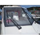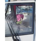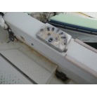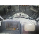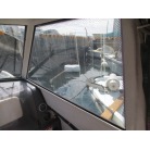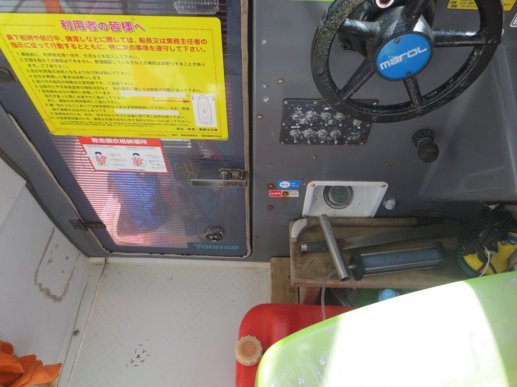 操船席周りは窓の状態もよく視界良好です。オーナー様のお話ではメーター交換歴があるそうで、実働は約4000時間程度ではないかとの事です。写真に写るGPS魚探は取り外させて頂きます。