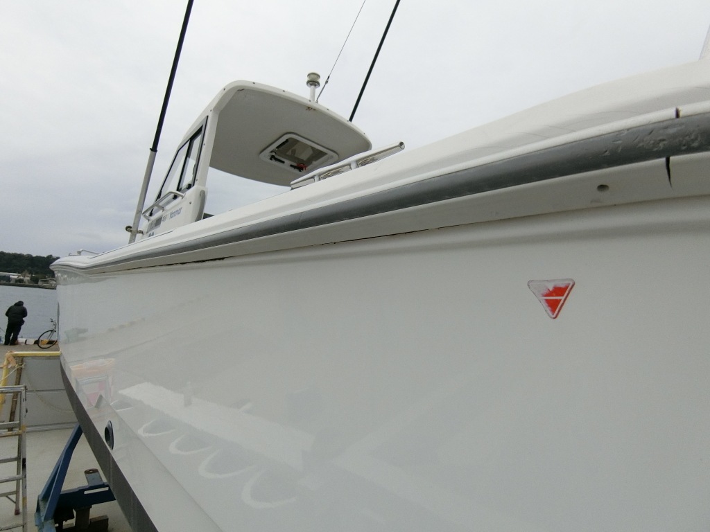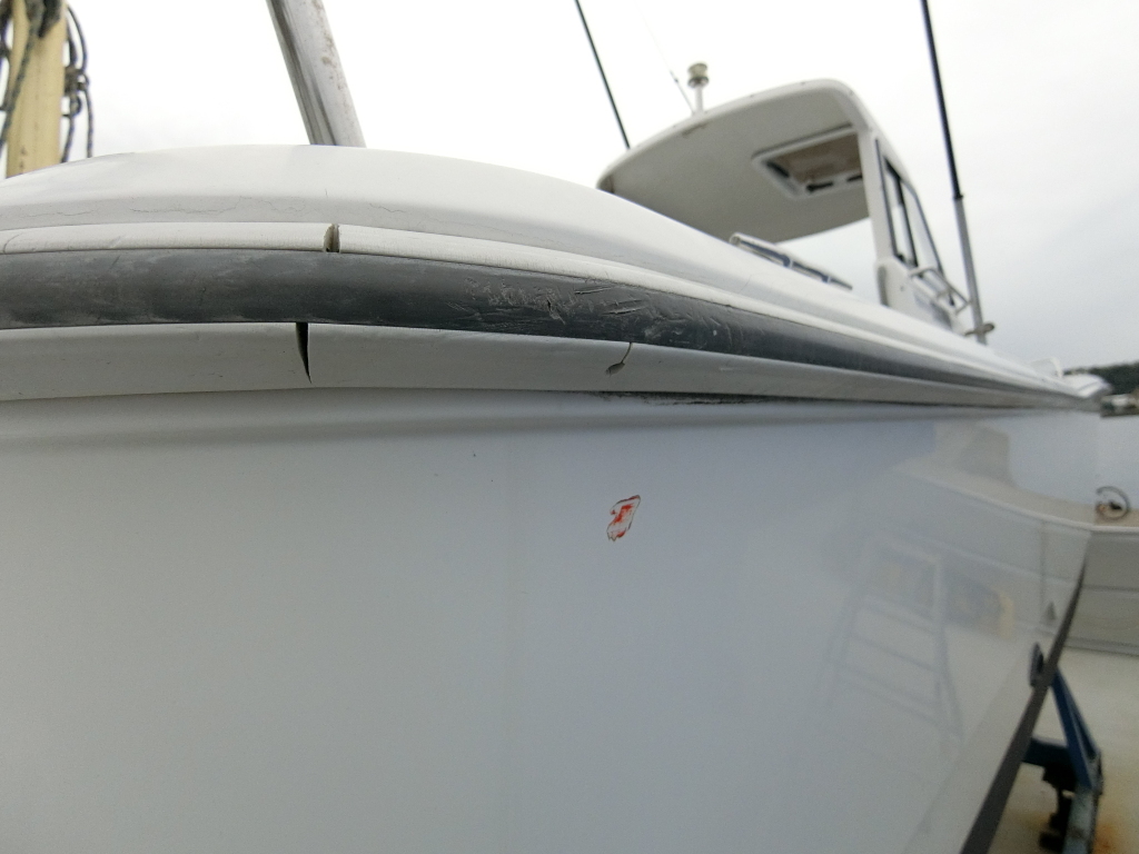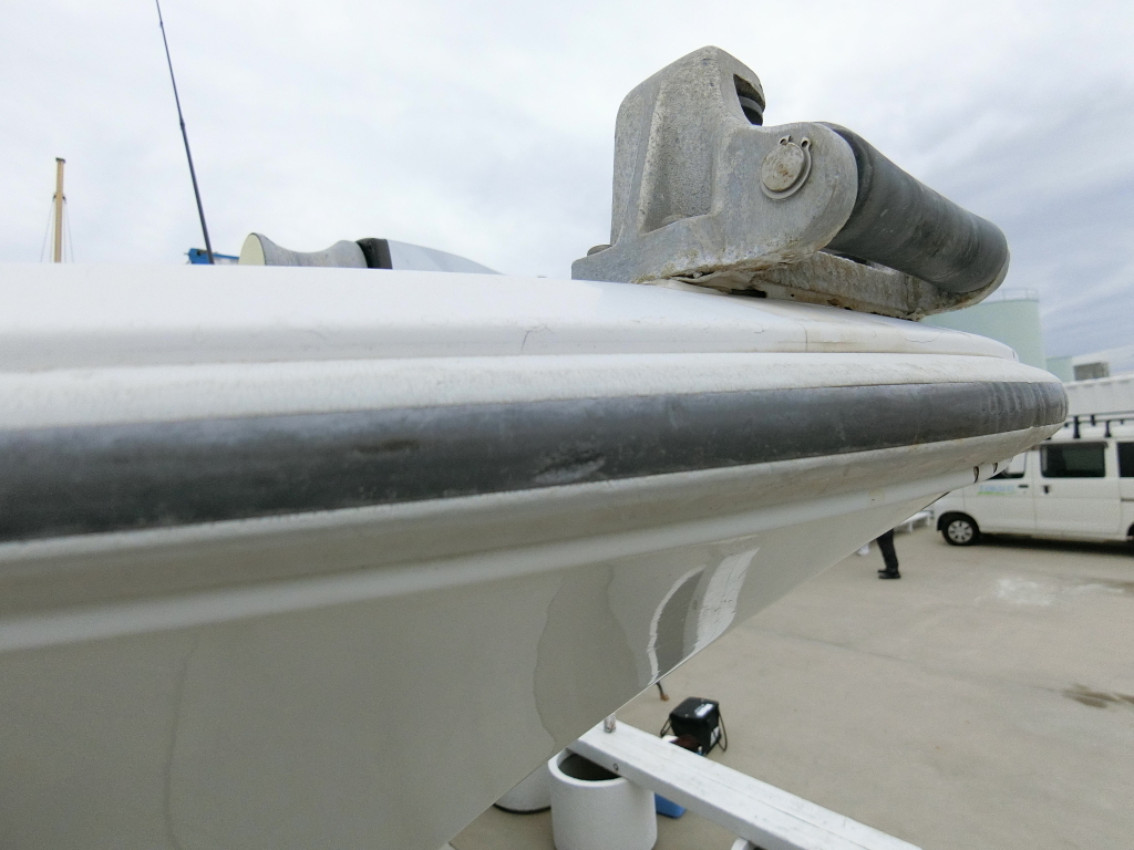 船体先端部のガンネル下のFRP部分には小さな欠けが3カ所ほど見られます。
