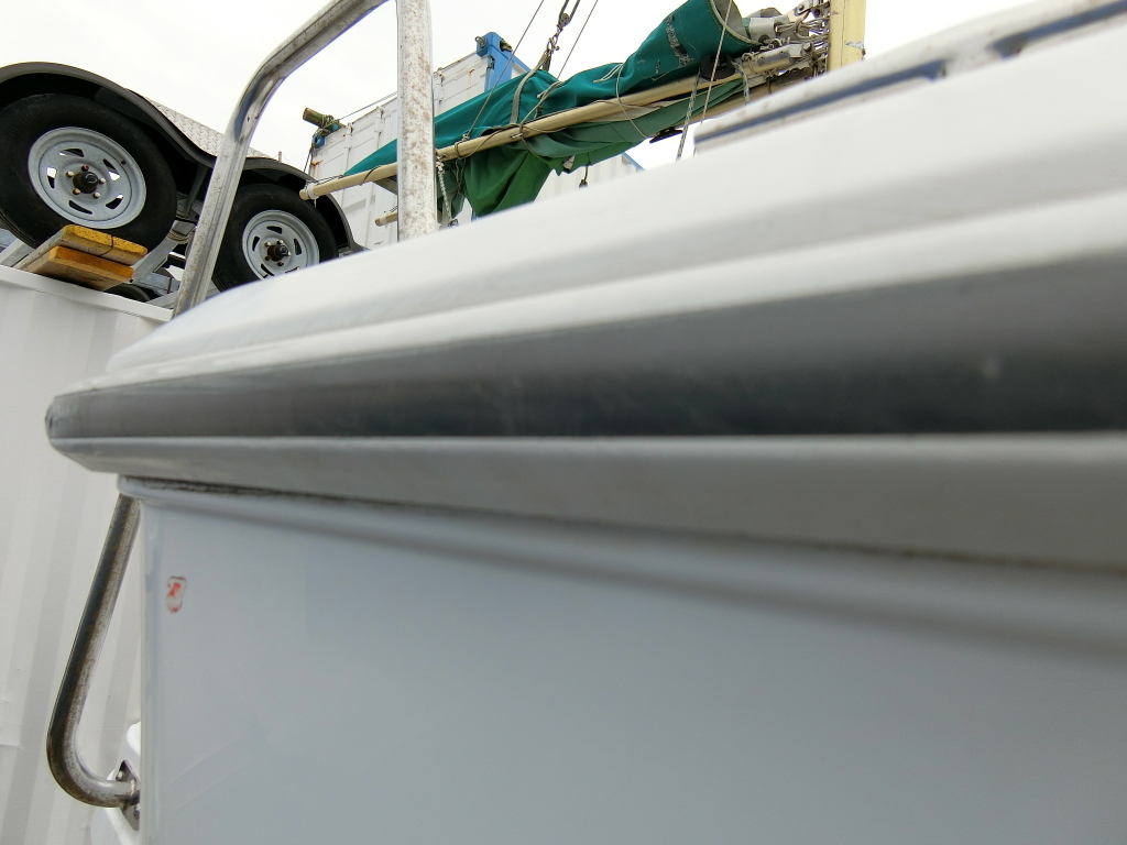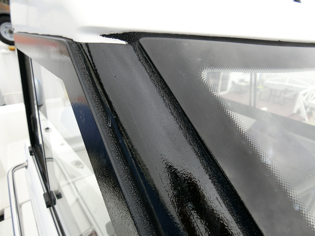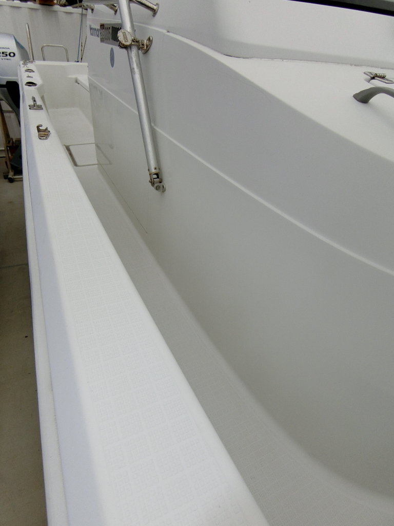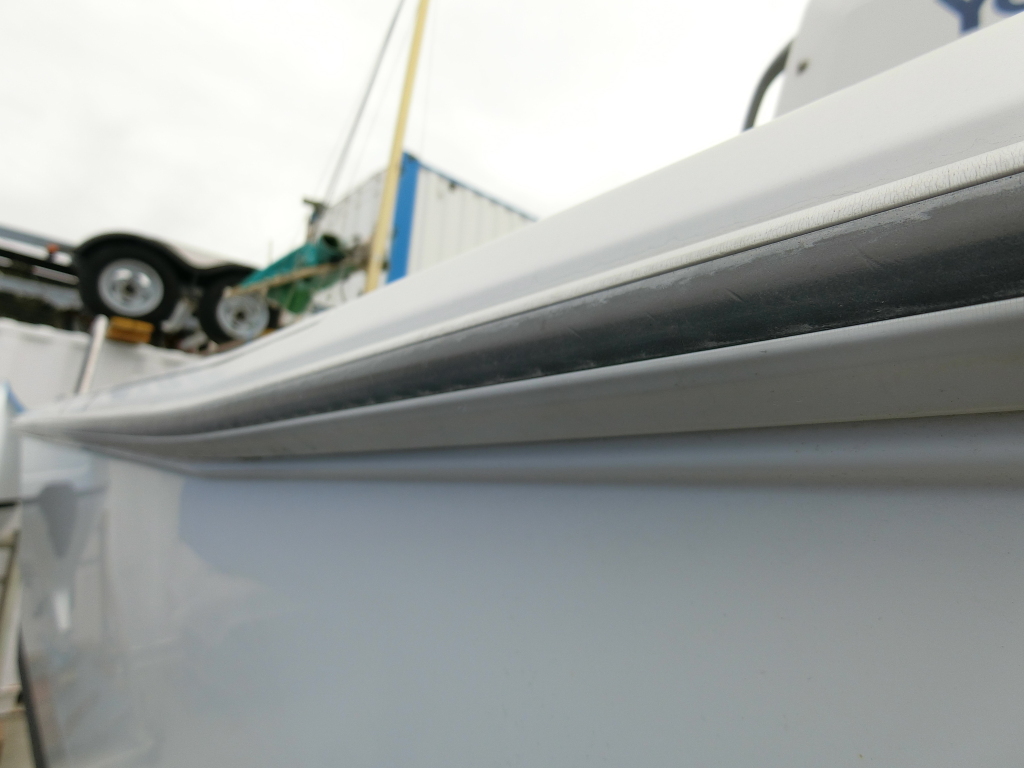 またプラスチックガンネルに良くあることですが、船体後部両端部角のカーブがきつい部分は、ガンネルの割れが見られます。