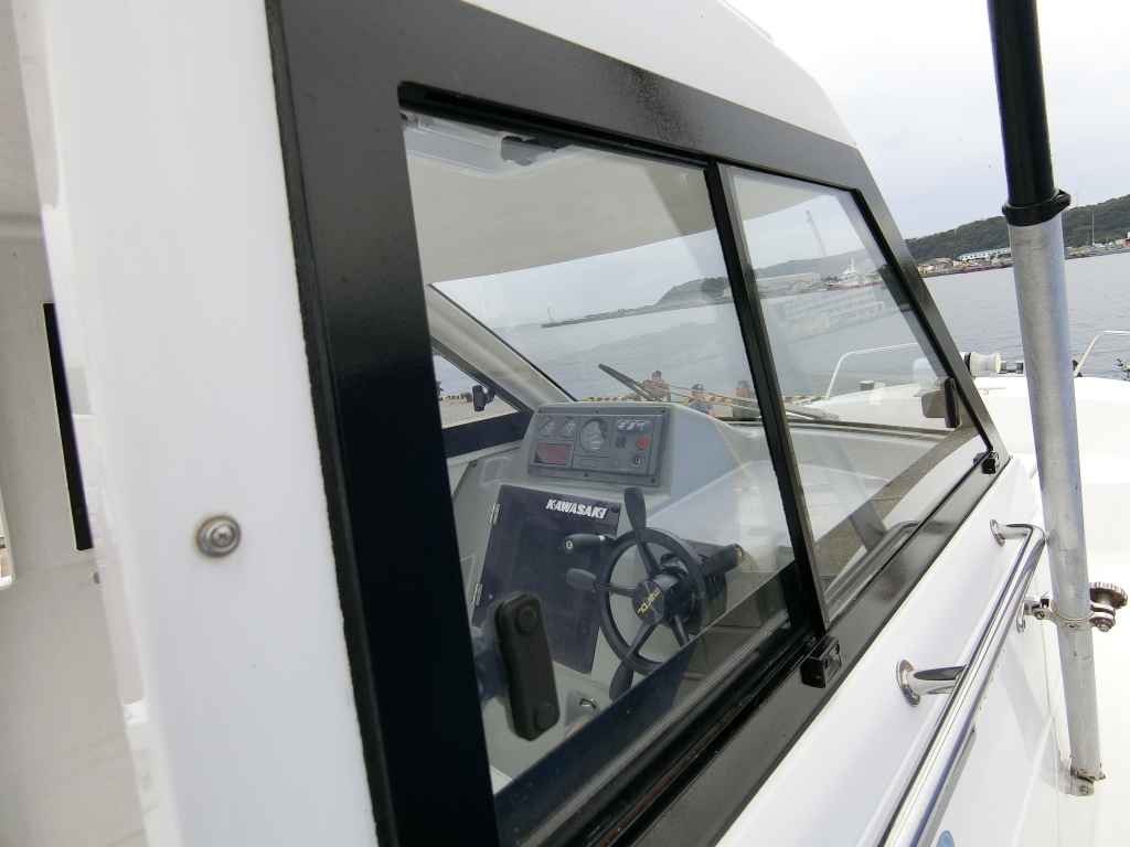 今回の艇は、ボート関連の仕事をされているオーナーさんが、ご自分の釣り用に購入し、さまざまな部品を新品交換し、エンジン整備を行い、もう少しで仕上がる直前でしたが、別の船を購入する事になり、手放すこととなりました。