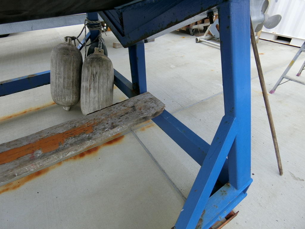 現在は、船を仕上げている最中でしたので、下架の難しい場所に上架して保管してあります。