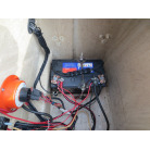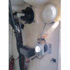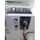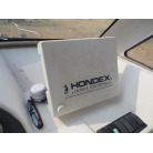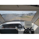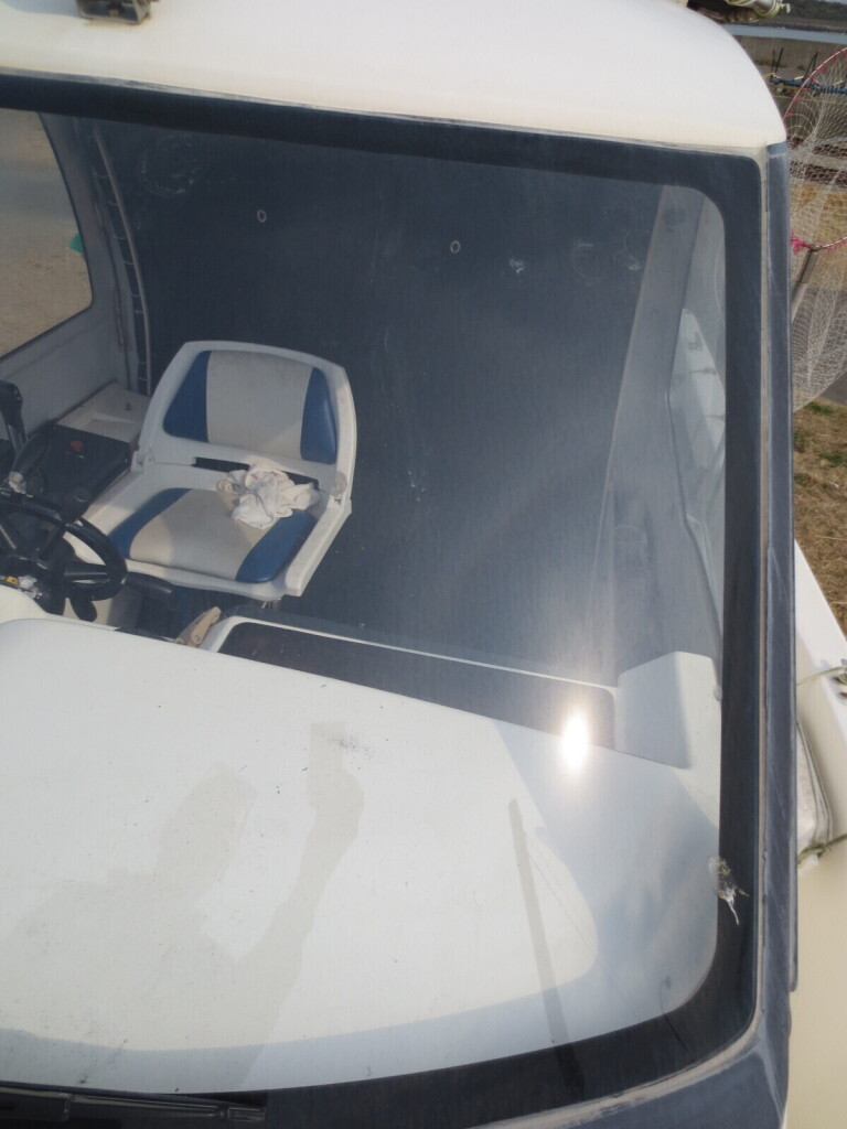 操船席周りは窓の割れも無く浸水も無い感じです。HONDEXのGPS魚探が装備され操舵は油圧です。