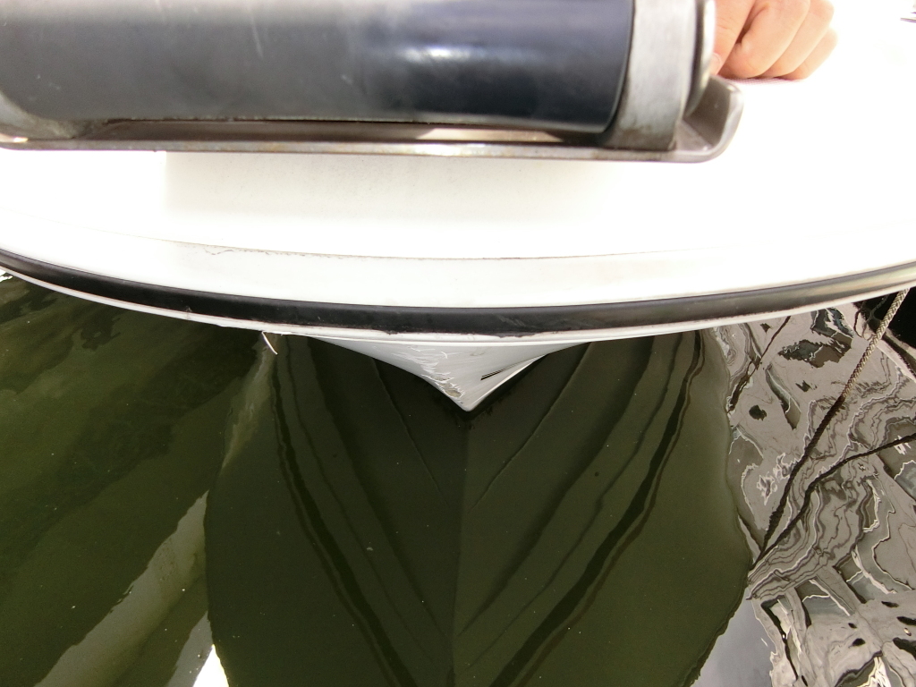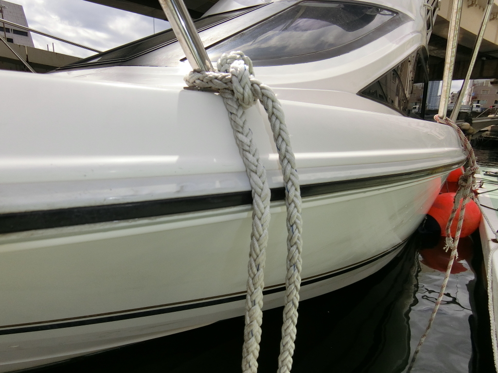 ハルの突端部分に桟橋にすれた跡が見られます。