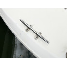 バウの左右のクリートの横に係留時に付いたと思われるキズの補修跡が見られます。