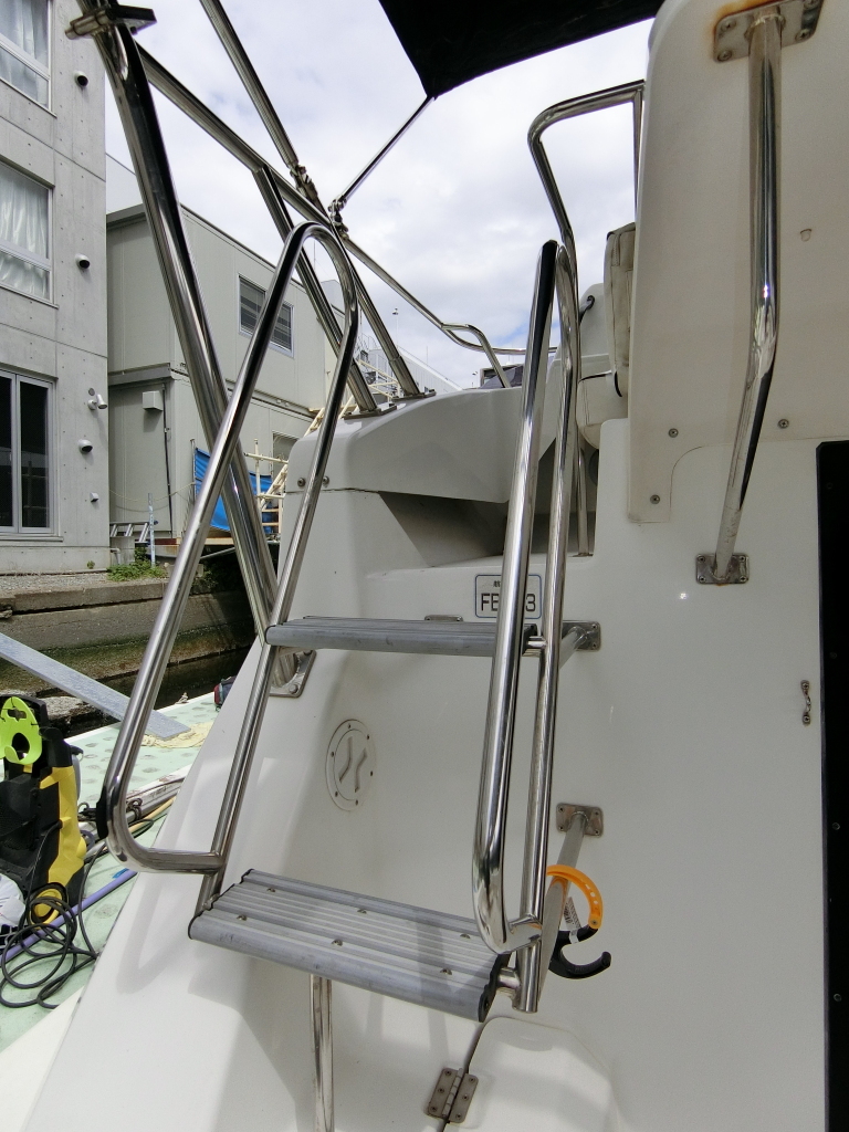 デッキ周りは使用にともなう汚れ等は見られますが、FRPの状態は悪く無く、状態は良好だと思います。