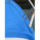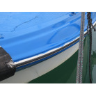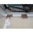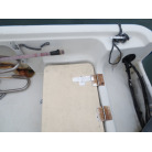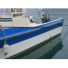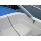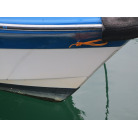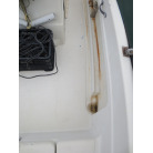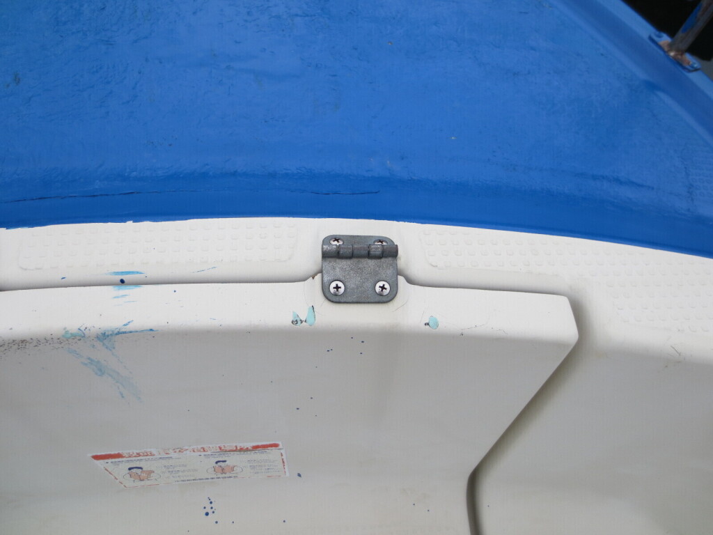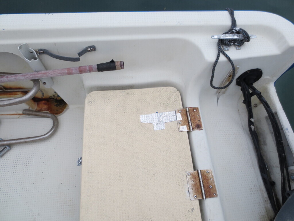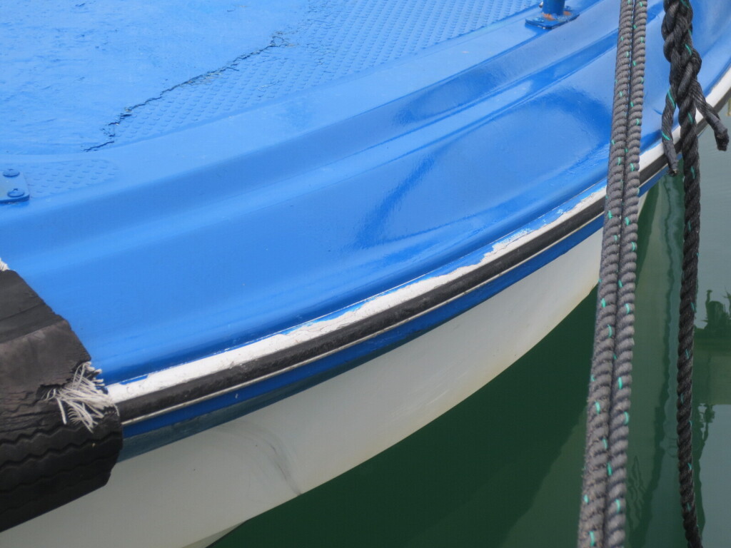 バウデッキに補修歴があります。漁港の槍付けでは、飛び乗ったりと一番傷む箇所なので厚めに積層している感じです。細かな傷や経年劣化、通常使用における傷はありますが、運航に支障がある様な物はありません。