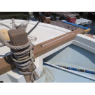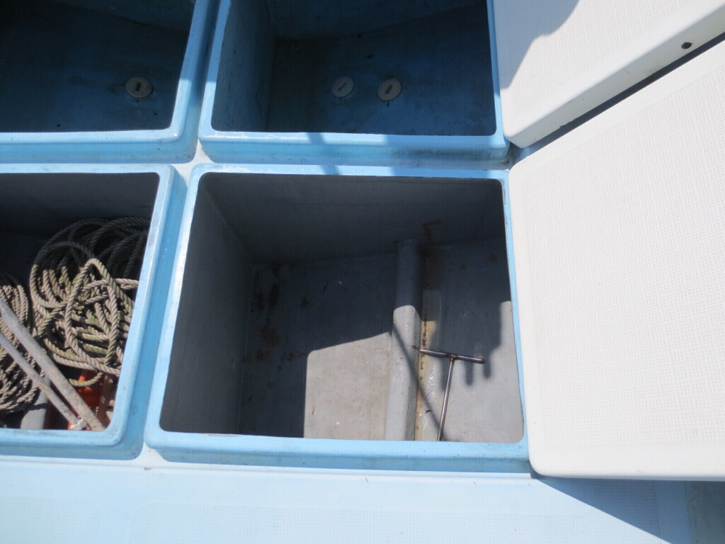 デッキ周りも年式からすると程度は悪くはなく、木製のカンヌキとタツもFRPも巻いて強度を持たてあります。