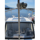 後部デッキはステンレス製のフレームの大き目なオーニングが装備されています。