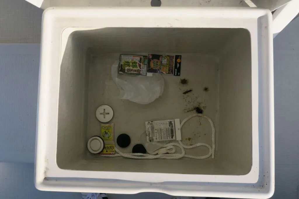 席下は収納庫、その脇にイケスが設置されています。