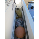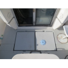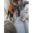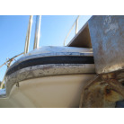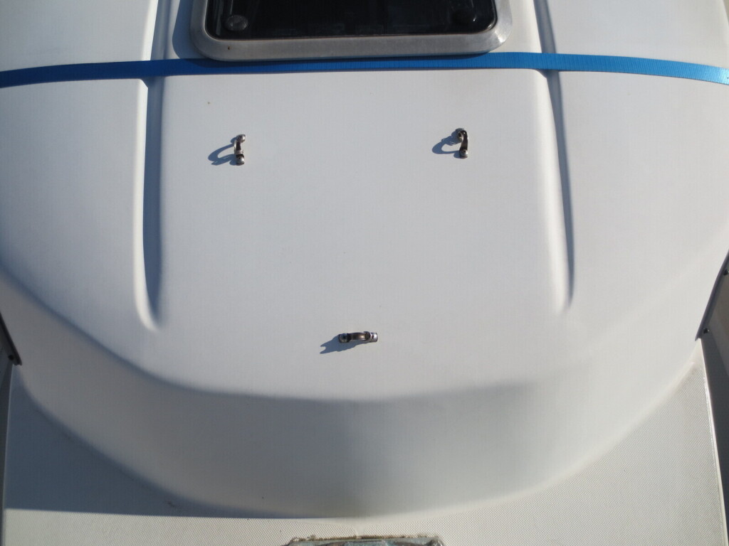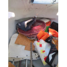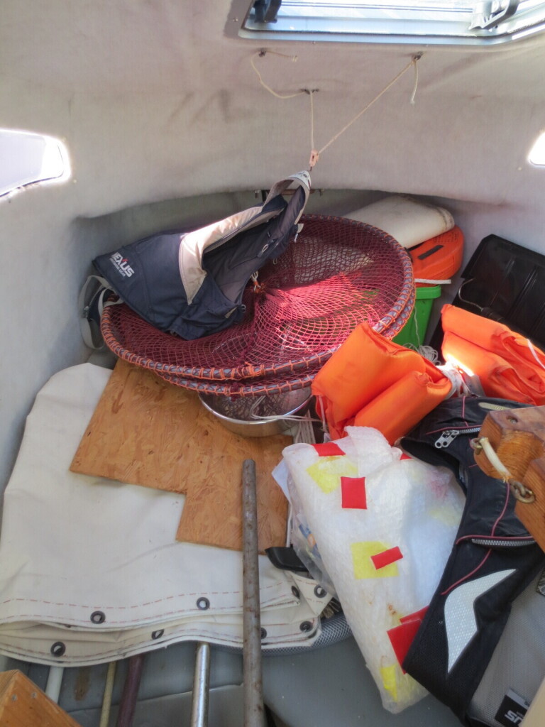 前室も現在は荷物で一杯でバースクッション等の状態が確認出来ていません。両舷にあるアクリル製の窓も大きな損傷はなく、大き目のバウハッチが装備され換気等に便利かと思います。