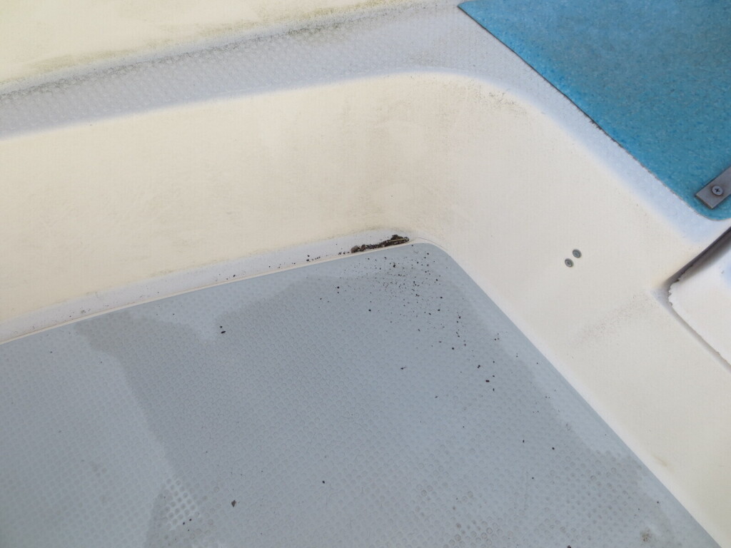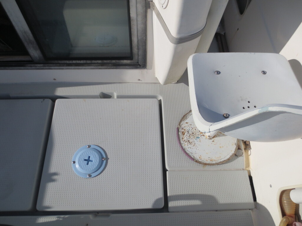 他に船尾側には釣りに必須のイケスもあり、蓋の欠品個所や大きな損傷個所は無い感じです。