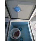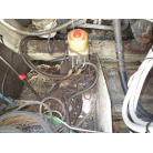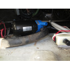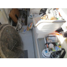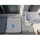 動作未確認ですが、前方室の床板の下に電動マリントイレの装備がありました。