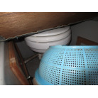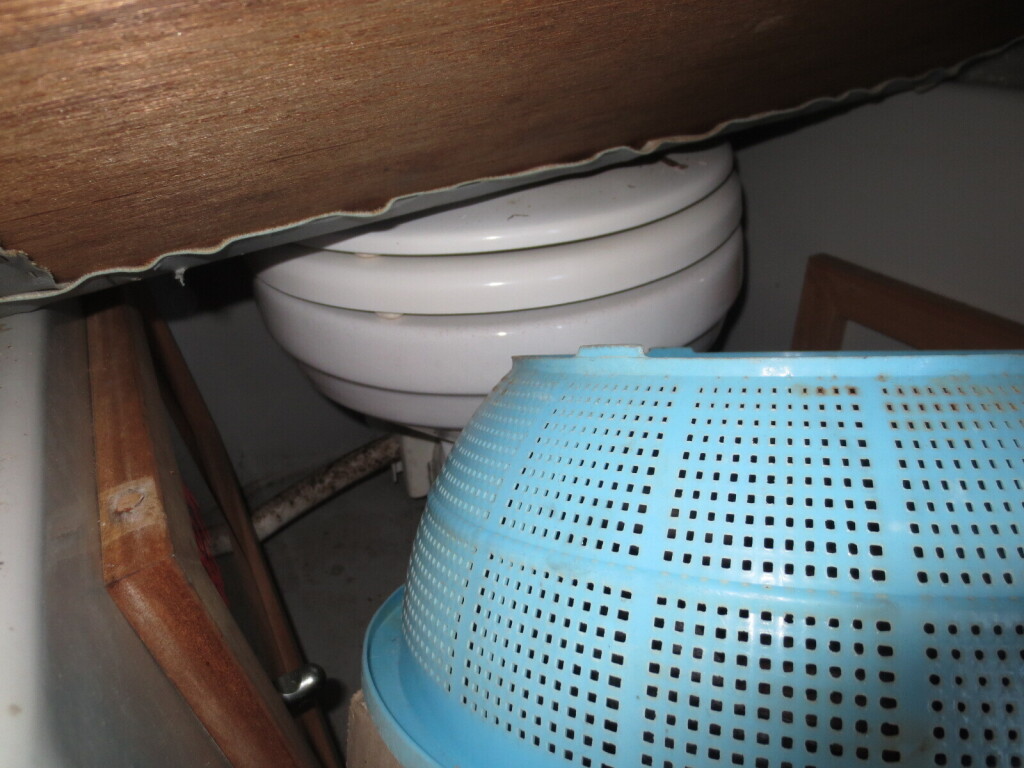 経年劣化から反りが出ることの多い床下収納の蓋に一部、補強が入れられています。(船首側)