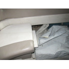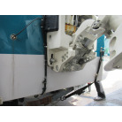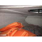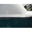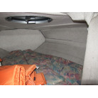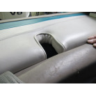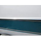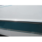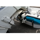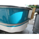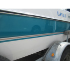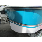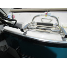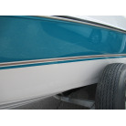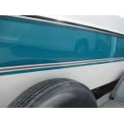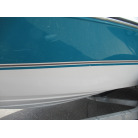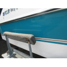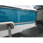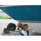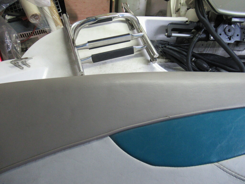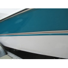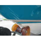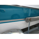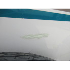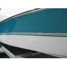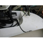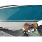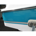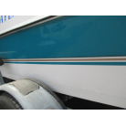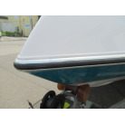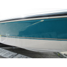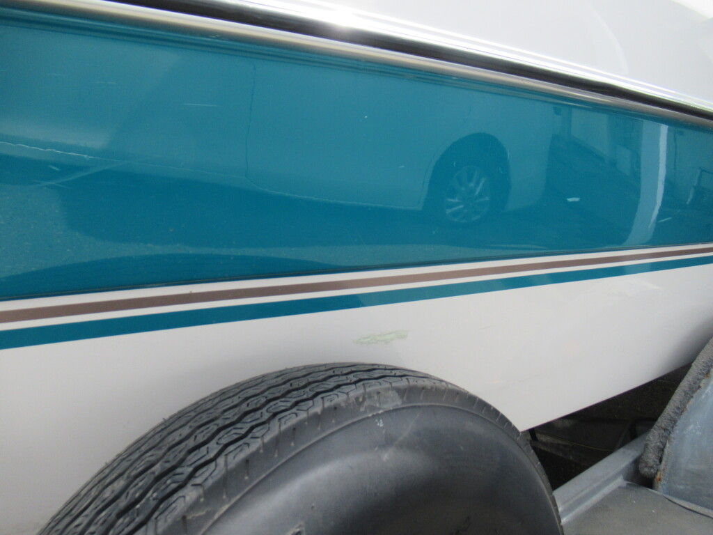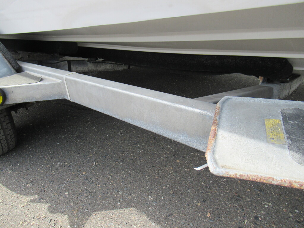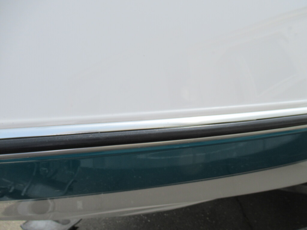 ハル周りは、船首側トレーラのローラー部付近の傷や汚れ、左舷側には数箇所の傷、右舷側には小さくパテで補修した箇所があり目立つ傷が数箇所見られますが、屋内保管されているためか、年数経っていますが全体的にはつやがあり綺麗な印象でした。