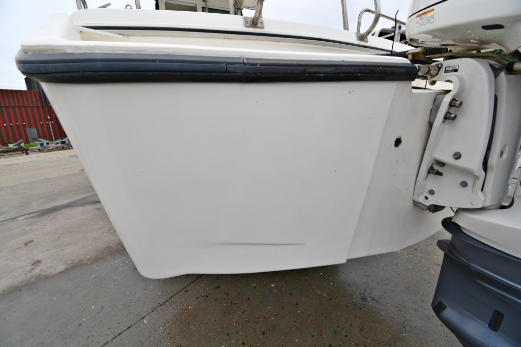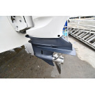 船外機はブラケット取付けではなく、船体を1mほど違和感なくエクステンションし船外機をつける為のトランサムボードを特注で製作されています