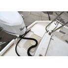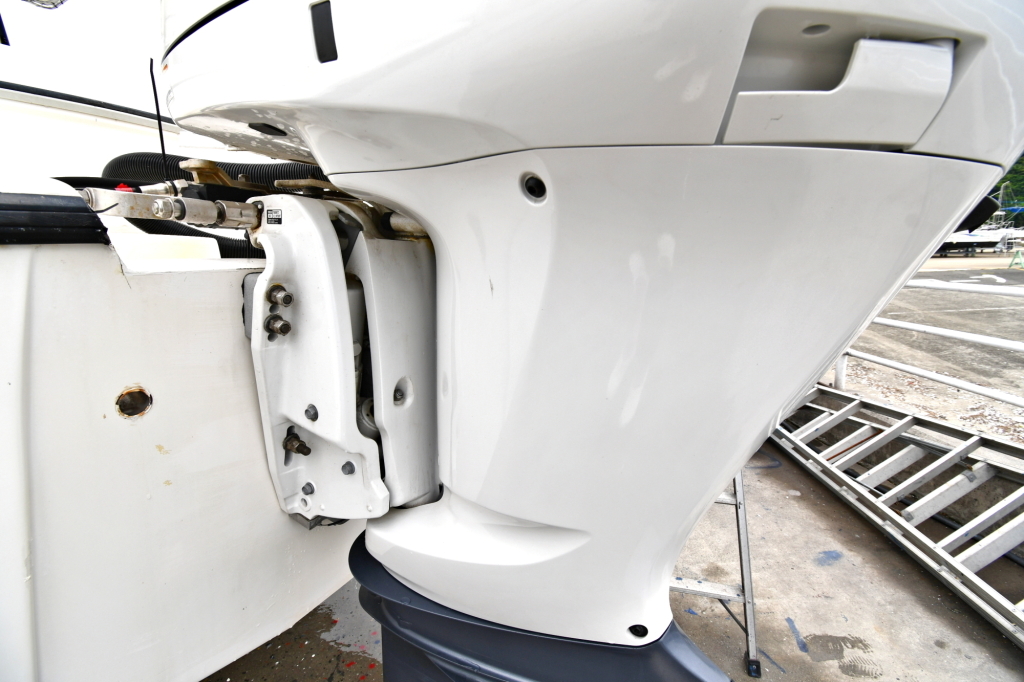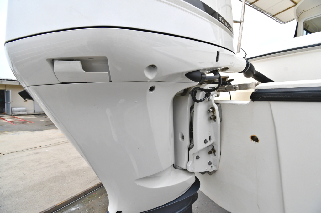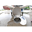 この船体形状に合わせて船外機はカウンターローテーションを選択し、真っ直ぐ傾かずに進んで行くそうです