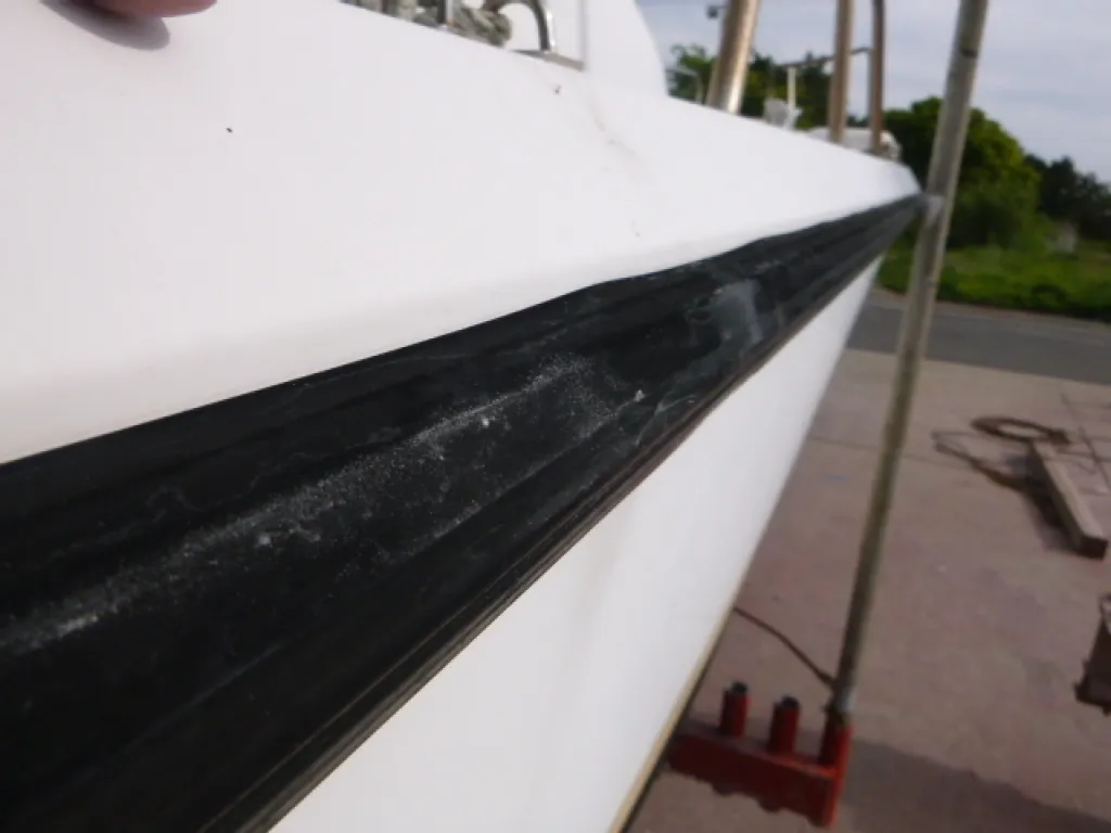 係留保管の為、ハルが汚れている部分が見受けられますが、専用クリーナー等で綺麗に落ちる汚れです。