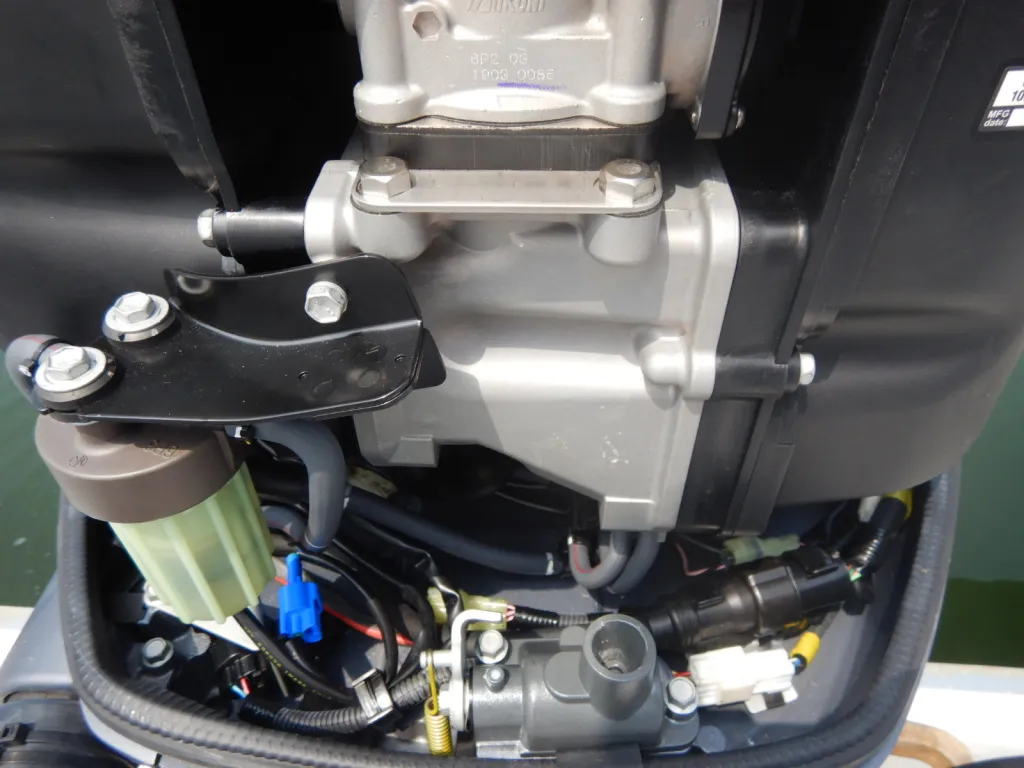 載せ替えと同時に、船外機では希少な3点リモコンも装着しています。