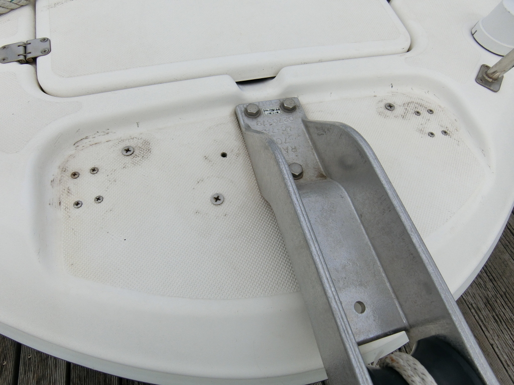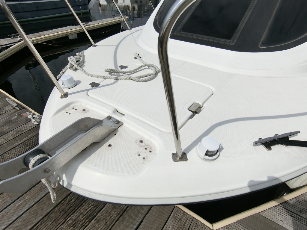 現在、ベイサイドマリーナのBバース(実長8メートル以下)に入れる為に、バウスプリッドを取り外し、代わりにアンカーローラーを装備していますが、外したバウスプリッドはオーナーさんのご自宅にあるそうですので、必要な方にはお付けします。
