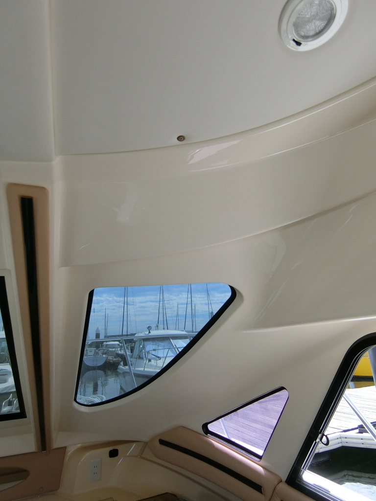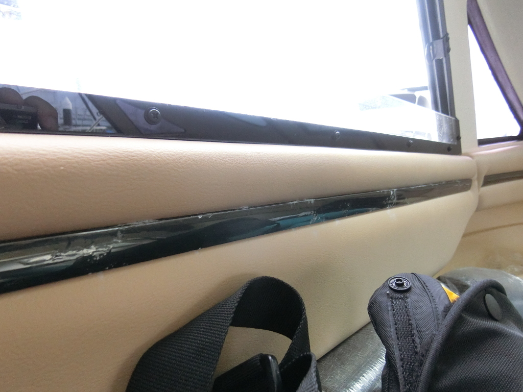 ①船内左右のサイドウインドウの下にあるアルミ製の黒いパーツに腐食が見られます。