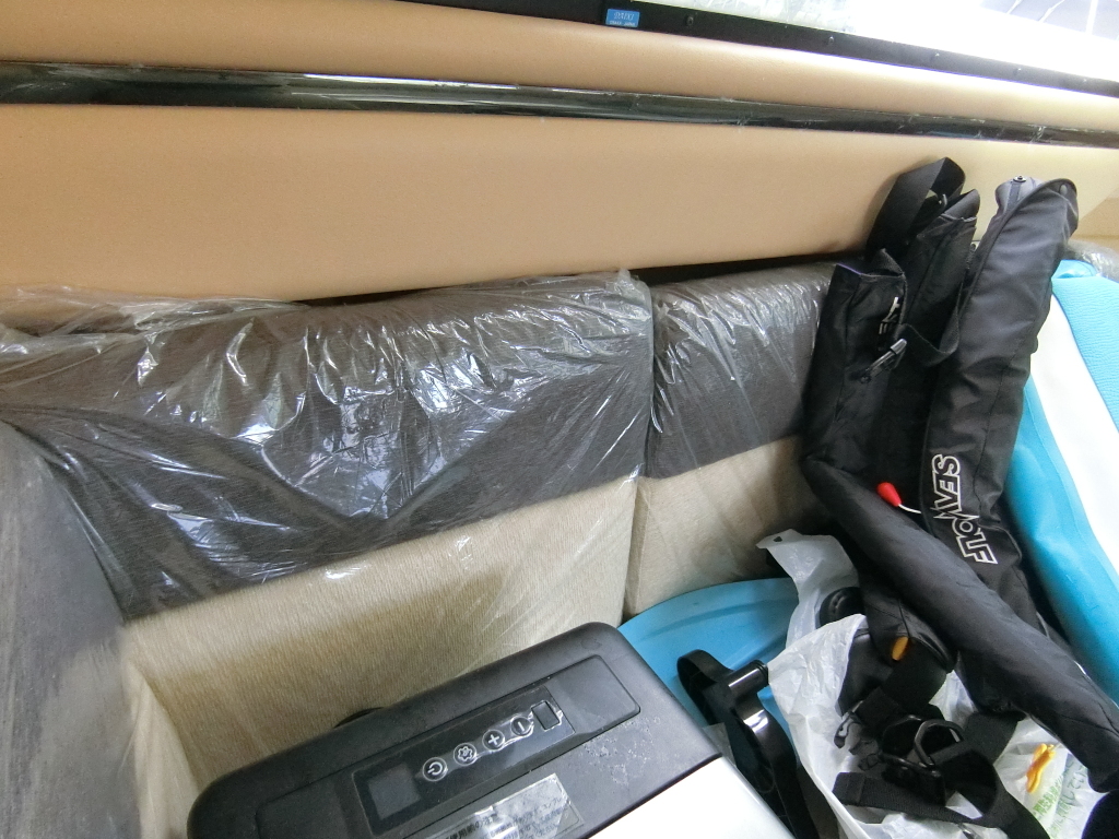 アフトデッキ後部にあるベンチシートは、普段カバーを掛けて保管していますので、かなりキレイな状態でした。(まだ新品時のビニールが付いていました。)