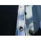 エンジンはアワー3035時間とディーゼルエンジンとしてはまだまだ現役です。メンテナンスも定期的に行い調子も問題ないそうです。バッテリーもツインバッテリーでアイソレーターも設置してあります。3kの発電機も設置してあり主にイカ釣りの集魚ライトにしようしていたとの事でした。ドライブの油圧も問題なく上下できます。ヤンマードライブはペラが完全に水面以上に出すことができカキも付きにくそうで係留にも向いているかと思います。ドライブメンテナンス窓もあり簡単にアクセスできます。