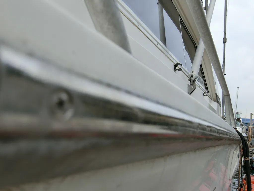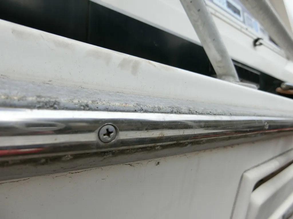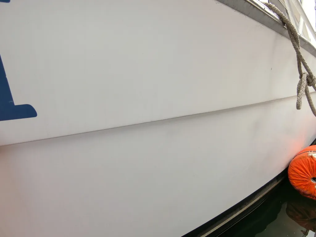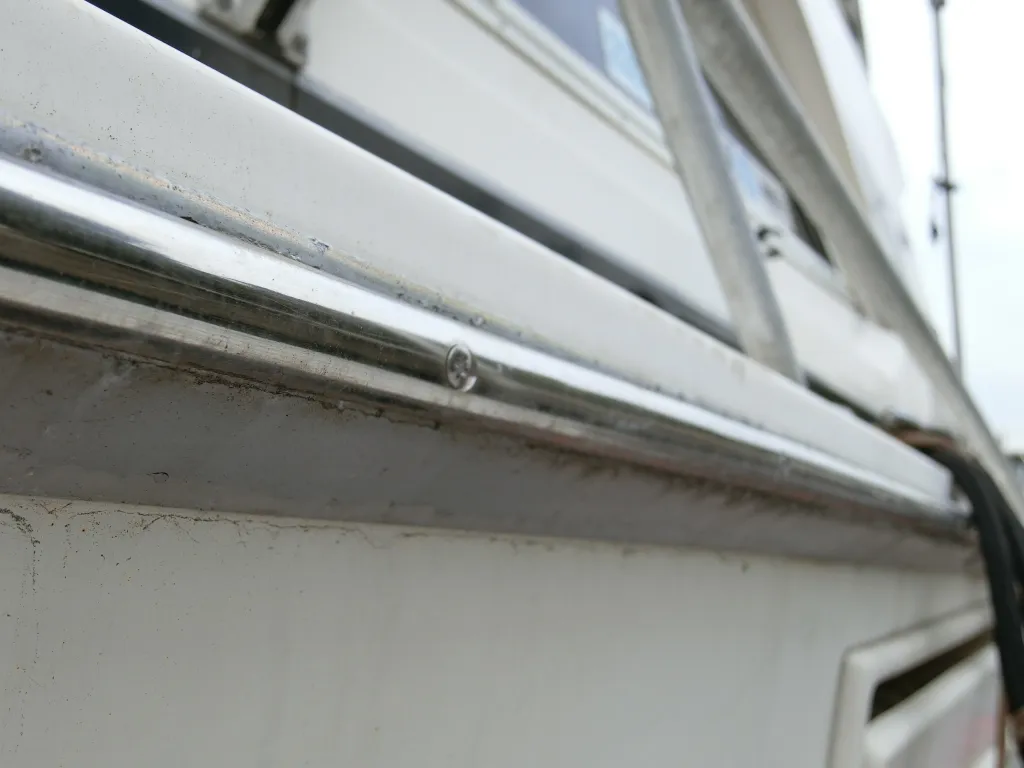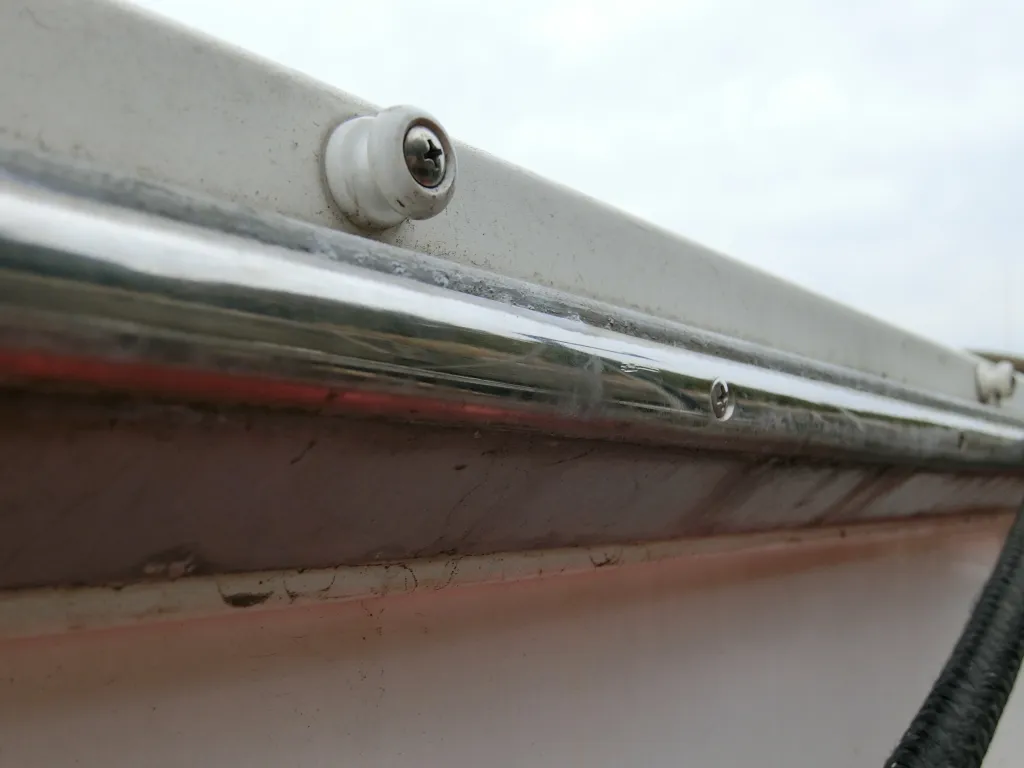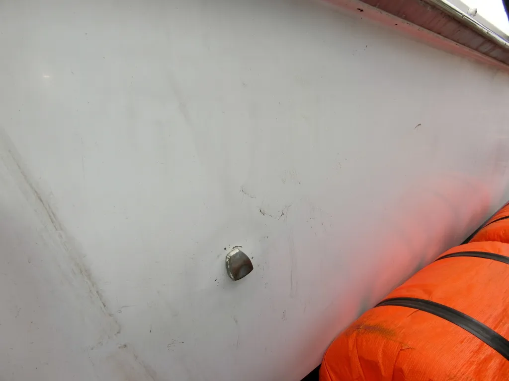 ・ガンネル周りは全他的に小傷や凹みが散見されます。一番目についたのは左舷前側で、20センチ程の凹みがありました。